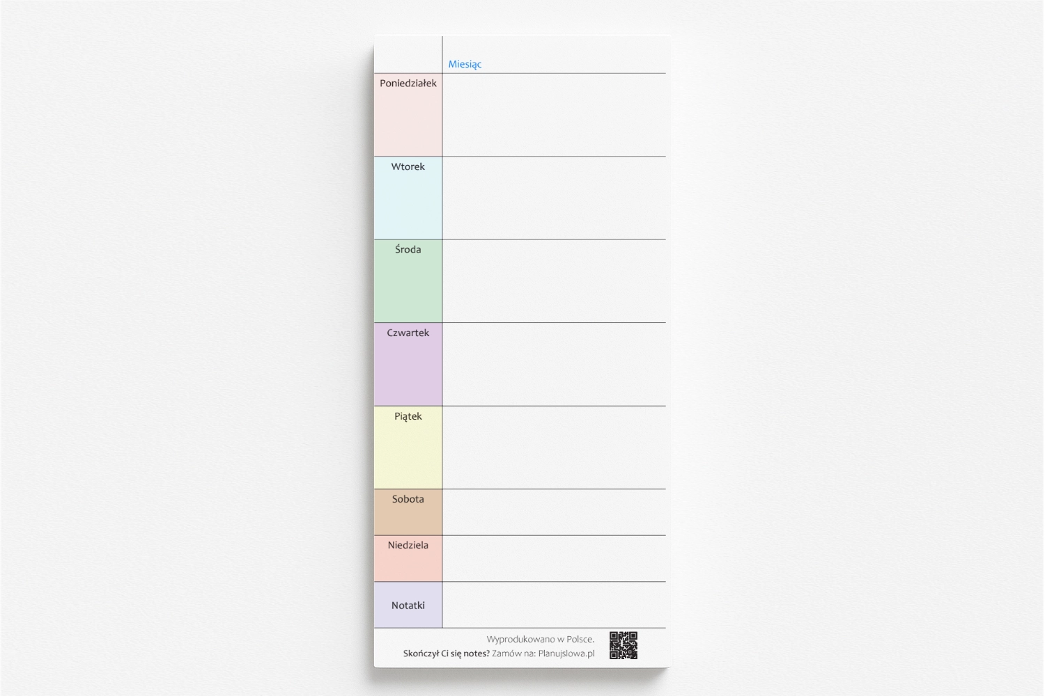 • Notes typu kalendarz tygodniowy bez dat z wyrywanymi stronami